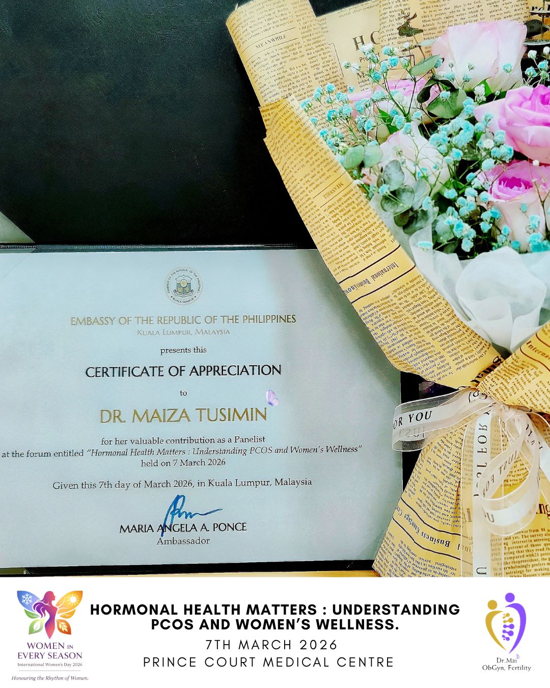 In celebration of International Women’s Day, Dr. Maiza Tusimin was honored to be invited as an expert panelist for a meaningful wellness event hosted by Prince Court Medical Centre in collaboration with the Embassy of the Philippines.