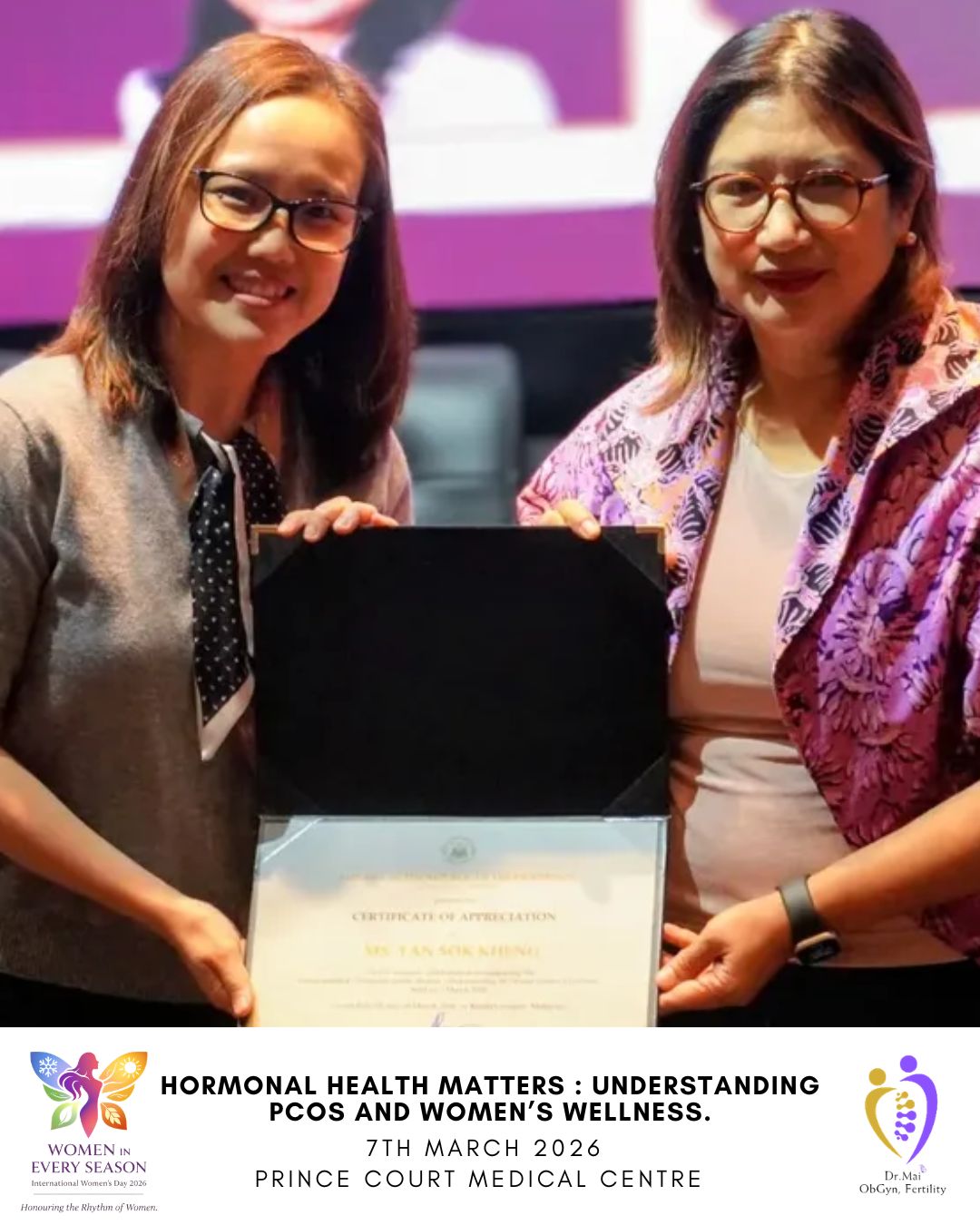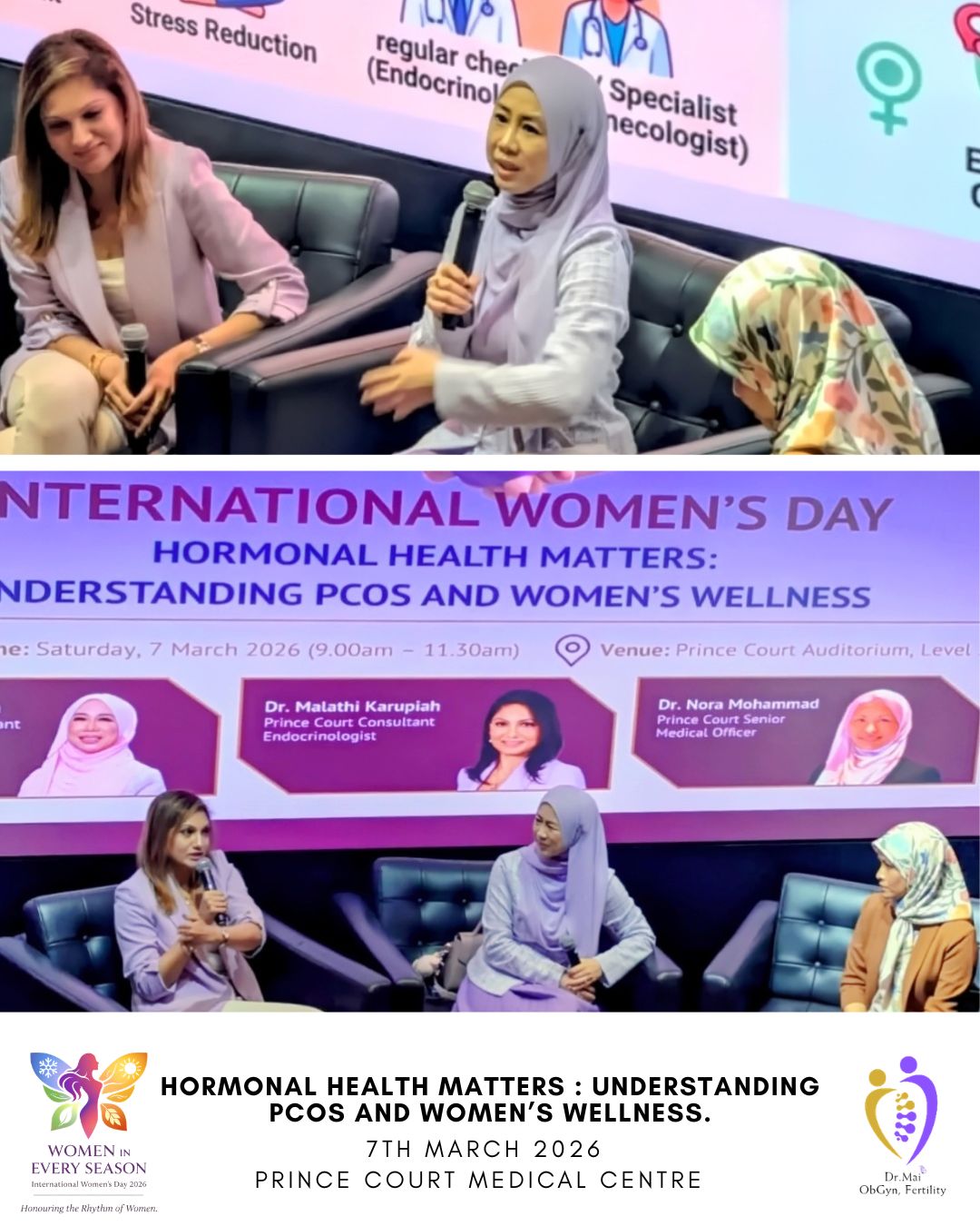 Moderated by Senior Medical Officer Dr. Nora Mohammad, Dr. Mai was joined on stage by Consultant Endocrinologist Dr. Malathi Karupiah. Together, they shared clinical insights on the intricacies of hormonal health, the physical and emotional impact of PCOS, and the critical importance of early diagnosis and proactive care.